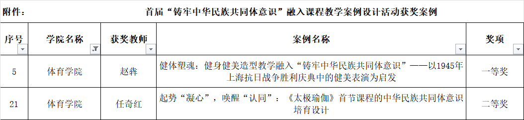 赵犇的获奖教学案例《健体塑魂:健身健美造型教学融入“铸牢中华民族共同体意识”——以1945年上海抗日战争胜利庆典中的健美表演为启发》,将“铸牢”元素融入教学方式与教学途径,以鲜活的教学案例展示“课程思政”元素在课堂组织中的“润物细无声”的作用,实现体育技能教学与思政教育自然衔接。任奇红的获奖案例《起势“凝心”,唤醒“认同”:<太极瑜伽>首节课程的中华民族共同体意识培育设计》,以太极与瑜伽跨界融合为载体,深挖中华传统体育文化与多民族健身智慧,让课程兼具专业性与文化厚度。